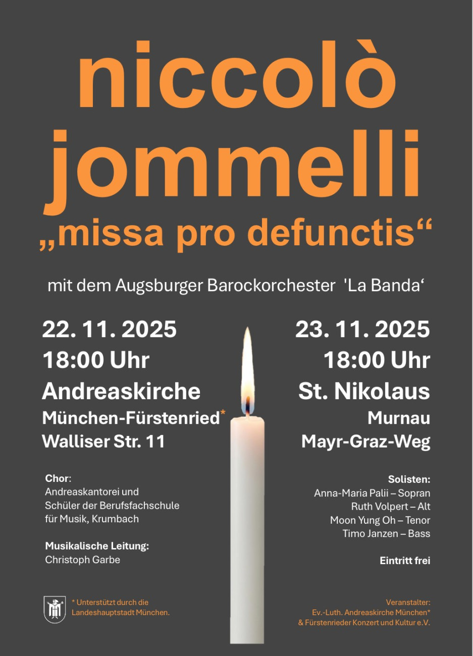 Am Samstag, 22. November 2025, um 18 Uhr erklingt in der Andreaskirche die „Missa pro defunctis“ von Niccolò Jommelli, ein Werk voll barocker Ausdruckskraft und stiller Andacht.